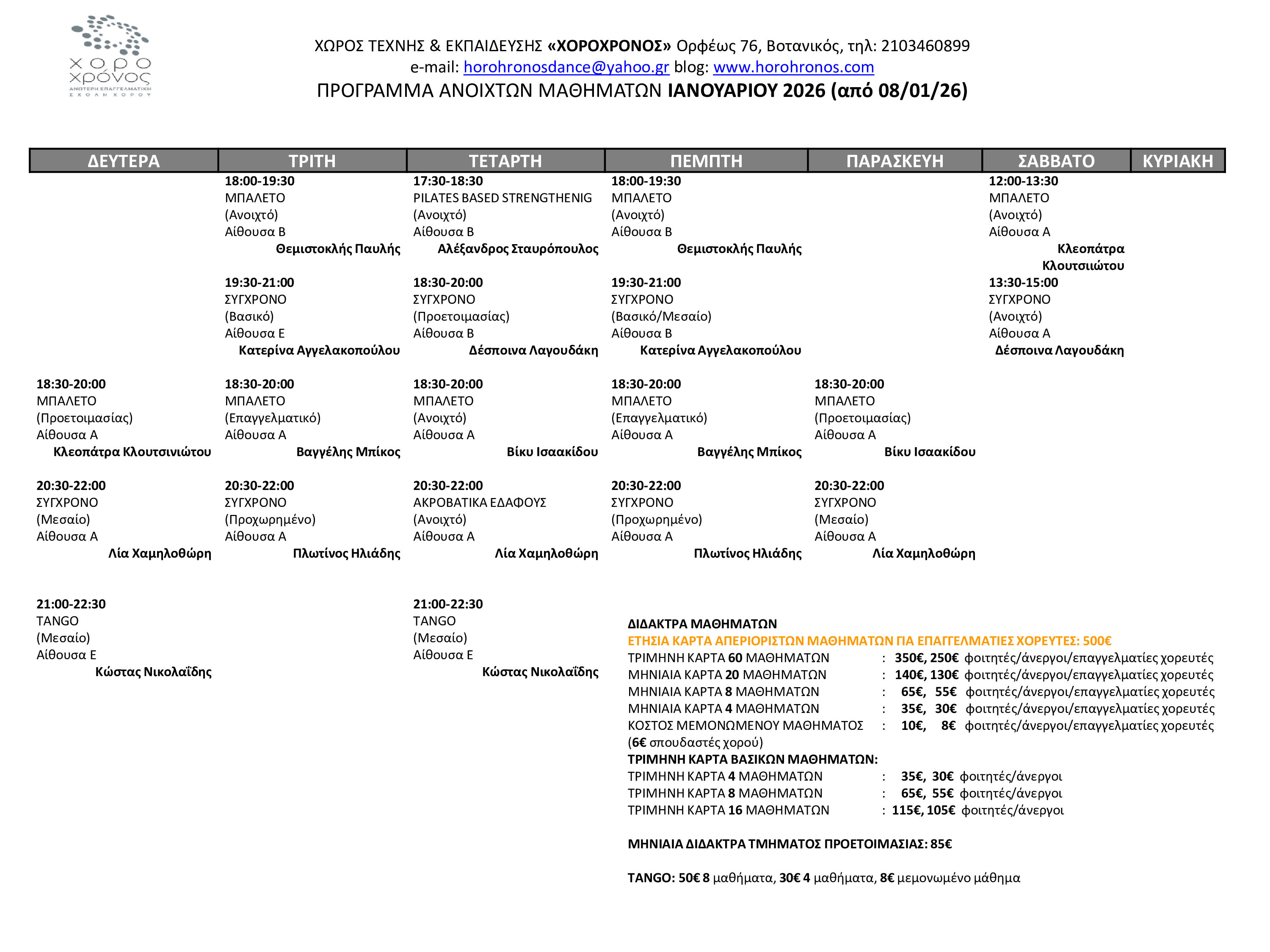 ΙΑΝΟΥΑΡΙΟΣ 2026 ΧΟΡΟΧΡΟΝΟΣ ΠΡΟΓΡΑΜΜΑ ΑΠΟΓΕΥΜΑΤΙΝΩΝ ΜΑΘΗΜΑΤΩΝ
