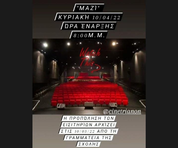 Η προπώληση των εισιτηρίων γίνεται από τη γραμματεία της σχολής Δευτέρα έως Παρασκευή 09:00-22:00